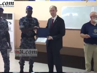 La cérémonie de présentation du drapeau à la 45ème promotion de l'Ecole Nationale des…