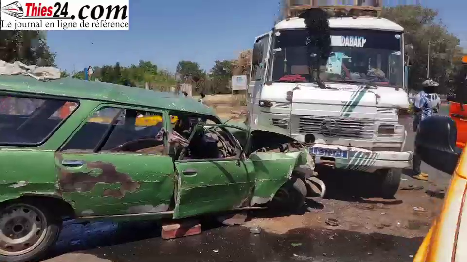 Un grand accident a fait 8 blessés dont 3 dans un état grave à Thiès. Il s’agit d’un choc entre un car « ndiaga ndiaye » et un véhicule de 7 places immatriculé, intervenu en pleine ville de Thiès, précisément au croisement Bédé Yacine, non loin du Lycée Malick Sy. Ce drame est survenu au moment la recrudescence des accidents de la circulation est décriée, poussant le gouvernement à annoncer des mesures conservatoires